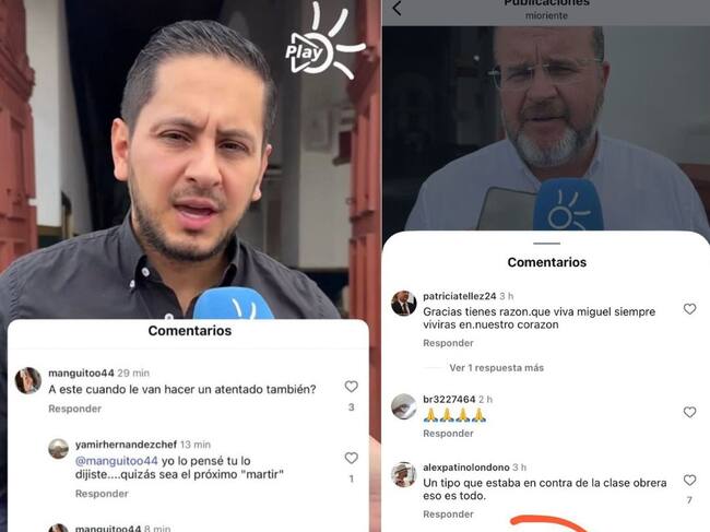 El alcalde de Rionegro, Jorge Rivas, y el senador por el Centro Democrático, Esteban Quintero, fueron víctimas de amenazas de muerte a través de comentarios en redes sociales, tras la publicación de un video en el medio local MiOriente durante una eucaristía en memoria del asesinado precandidato presidencial, Miguel Uribe Turbay.