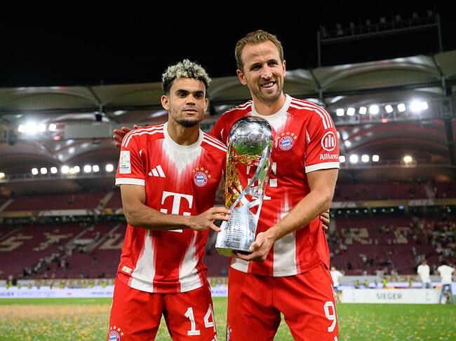 Harry Kane y Luis Díaz con el trofeo de la Supercopa de Alemania / Getty Images / Helge Prang - GES Sportfoto