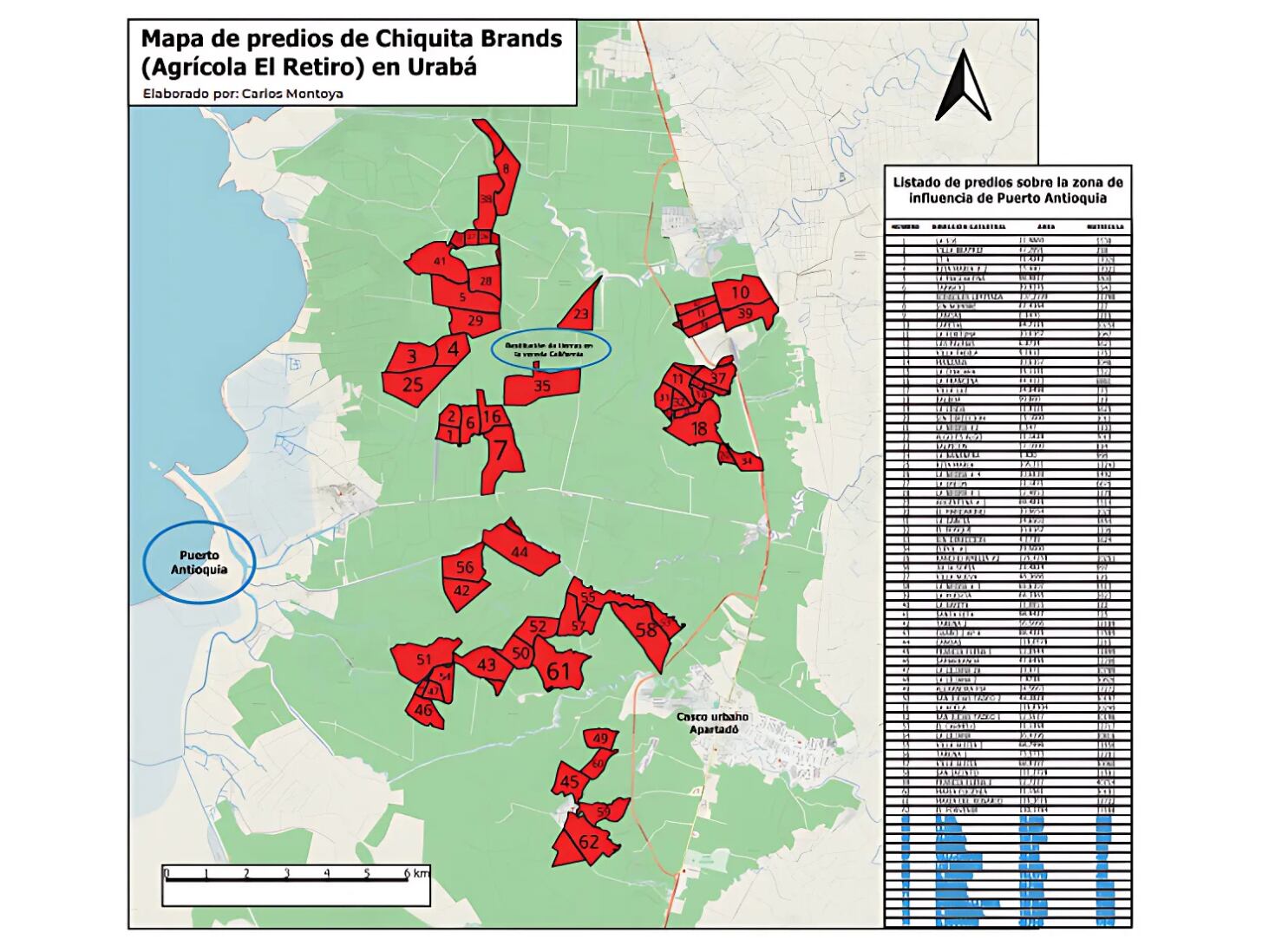 Predios de filial de Chiquita Brands que las víctimas piden recuperar para su reparación por el accionar paramilitar