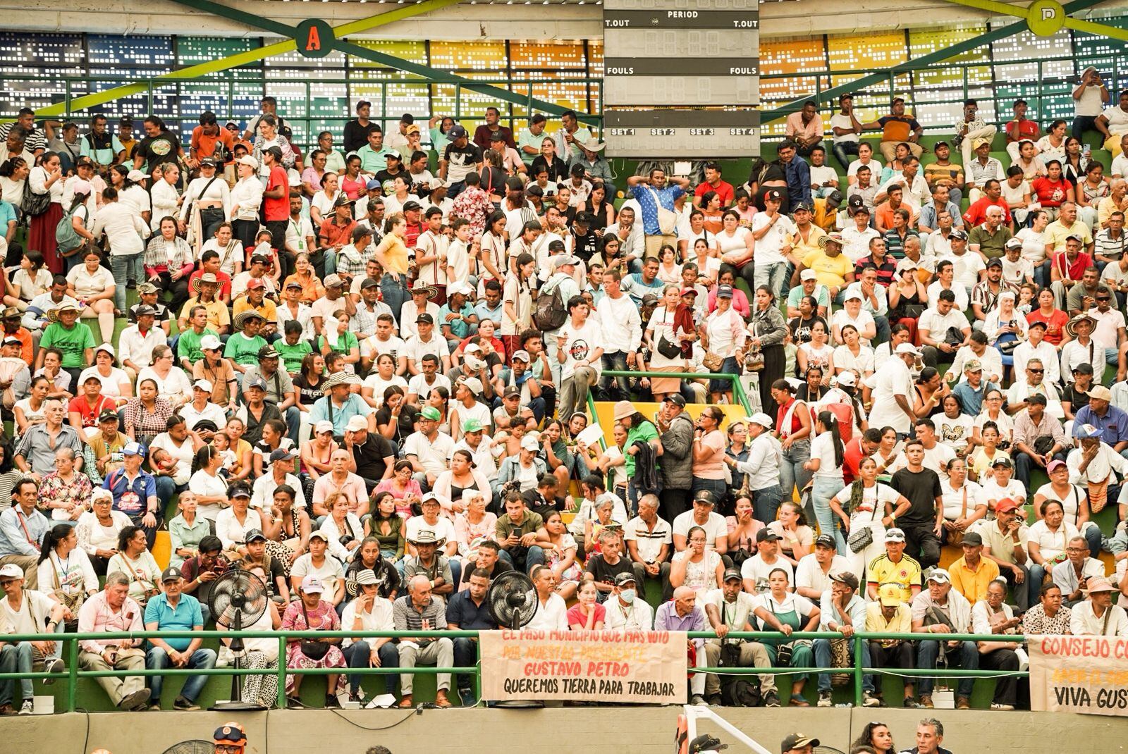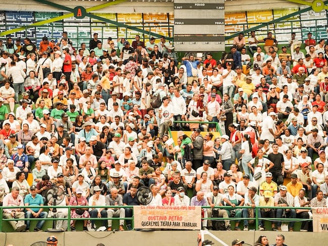Más de 8.000 personas se congregaron en el coliseo Julio Monsalvo para presenciar un momento histórico en la Reforma Agraria colombiana. El presidente Gustavo Petro, junto al director de la Agencia Nacional de Tierras (ANT), Juan Felipe Harman Ortiz, lideraron la entrega de 6.805 hectáreas a 800 familias campesinas, comunidades étnicas y víctimas del conflicto armado en seis municipios del Cesar: Astrea, Bosconia, Chimichagua, El Paso, Pailitas y Valledupar.