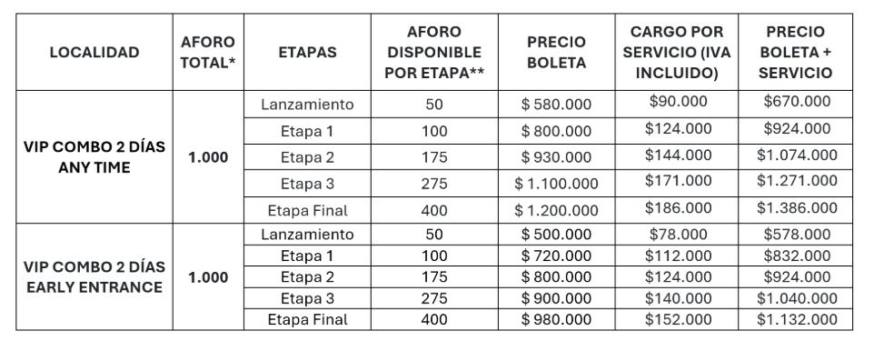 Los asistentes podrán adquirir boletas y paquetes turísticos completos, que incluyen transporte, alojamiento (desde camping hasta opciones de lujo) y acceso a todas las actividades en Ticketmaster.