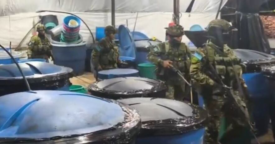 El coronel Fabio Martín, Comandante de la Brigada Contra el Narcotráfico Número 3, aseguró que “en el lugar fueron incautados más de 1.100 kilogramos de cocaína cristalizada, tres toneladas líquidas en proceso y más de 5.000 galones de insumos químicos”.