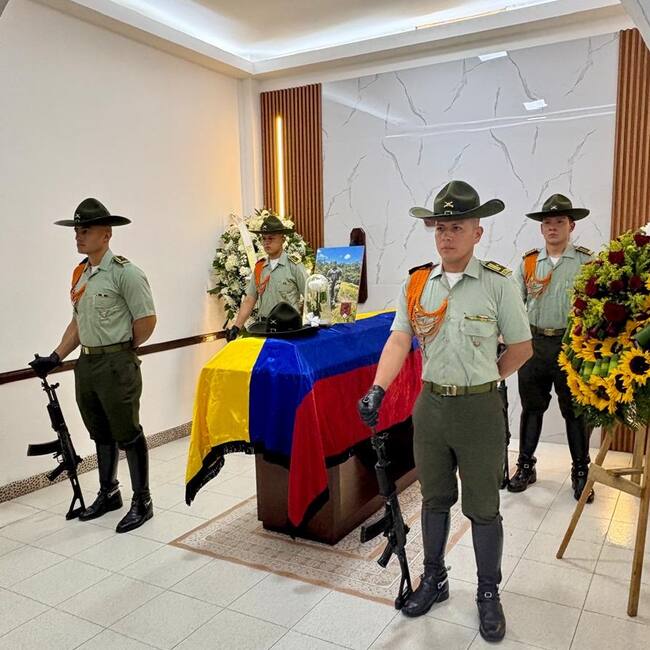 El cuerpo del uniformado Jhonatan Jiménez de 33 años de edad llegó cerca de las 5 de la mañana del domingo 24 de agosto y se lleva a cabo la velación en la funeraria Jardines del Renacer en el municipio de Montenegro.