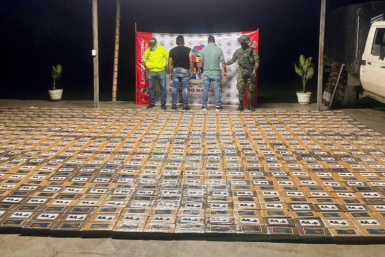 El Ejército y la Policía incautaron en el norte del Cauca más de una tonelada de clorhidrato de cocaína que era transportada en un vehículo por dos hombres que terminaron capturados.