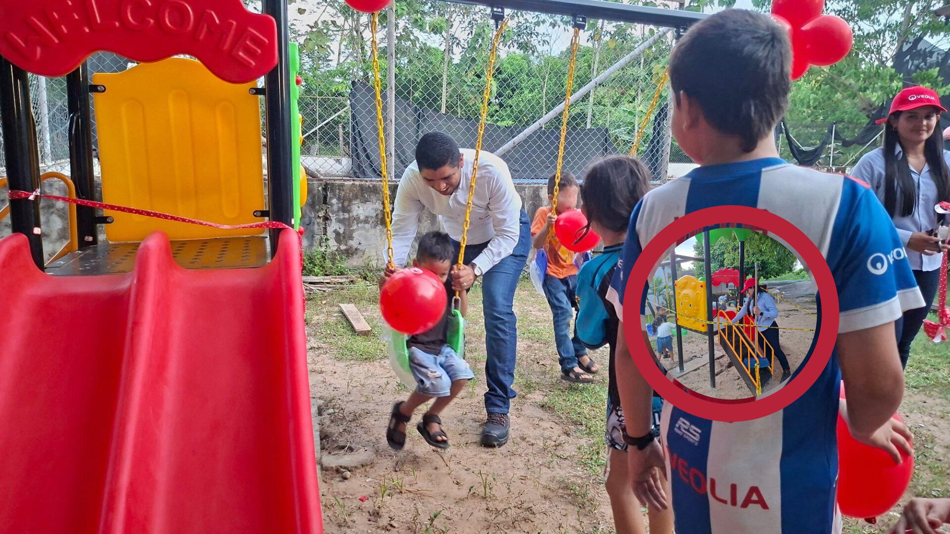 La empresa Veolia hizo entrega a la escuela La Gloria, un parque recreativo para los niños de la comunidad de Patio Bonito, en Barrancabermeja. Con el fin de fortalecer el tejido comunitario y brindar espacios adecuados y seguros.