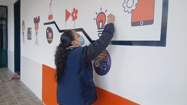 En alianza con instituciones educativas, la Fundación instala aulas de diseño de vida con realidad aumentada. A través de una tablet, los estudiantes siguen un recorrido interactivo con videos, textos y juegos que enriquecen su proceso educativo.