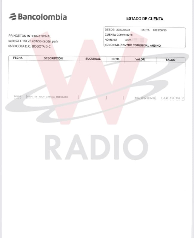 El tercer pago por 600 millones de pesos, fechado ya el 16 de junio de 2023. Fue otra transferencia revelada por la Unidad Investigativa de El Tiempo y realizada desde la cuenta de la empresa Innova controlada por el millonario coronel Mancera.