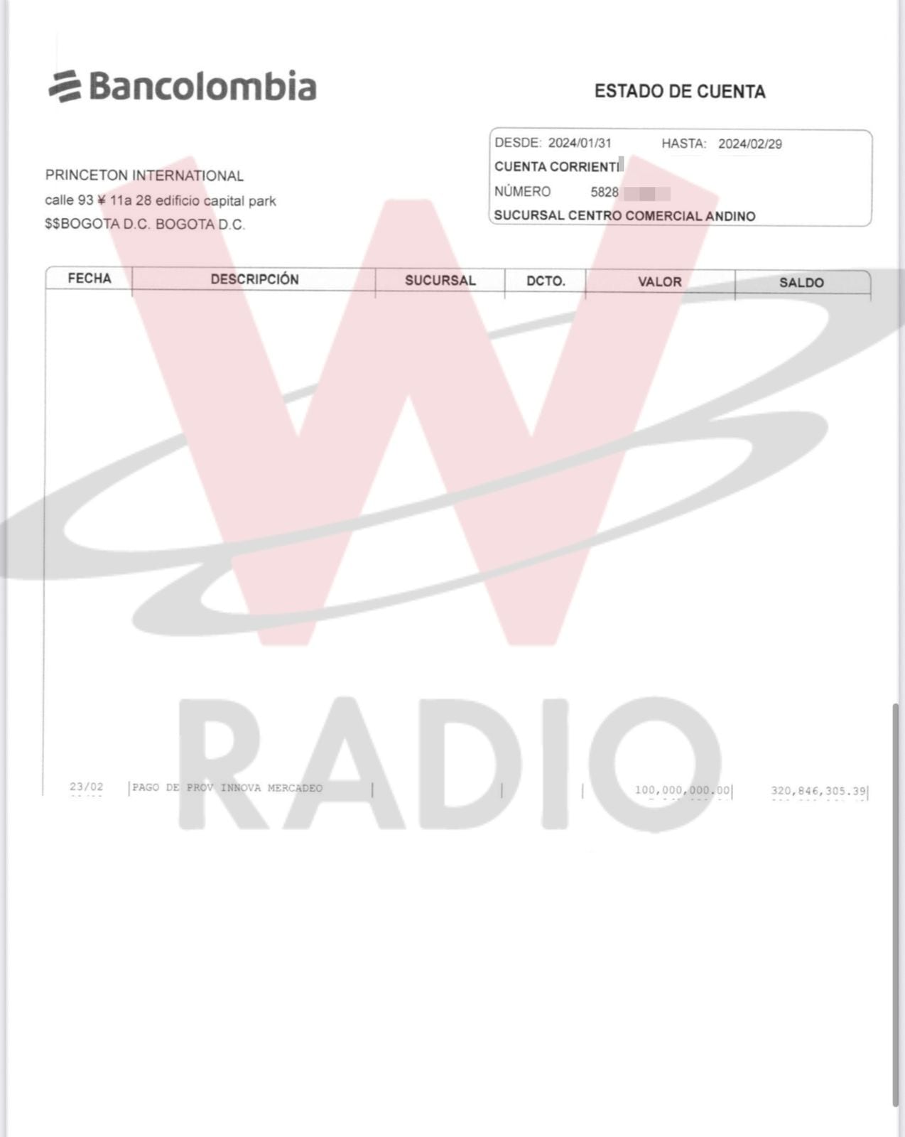 El tercer pago por 600 millones de pesos, fechado ya el 16 de junio de 2023. Fue otra transferencia revelada por la Unidad Investigativa de El Tiempo y realizada desde la cuenta de la empresa Innova controlada por el millonario coronel Mancera.