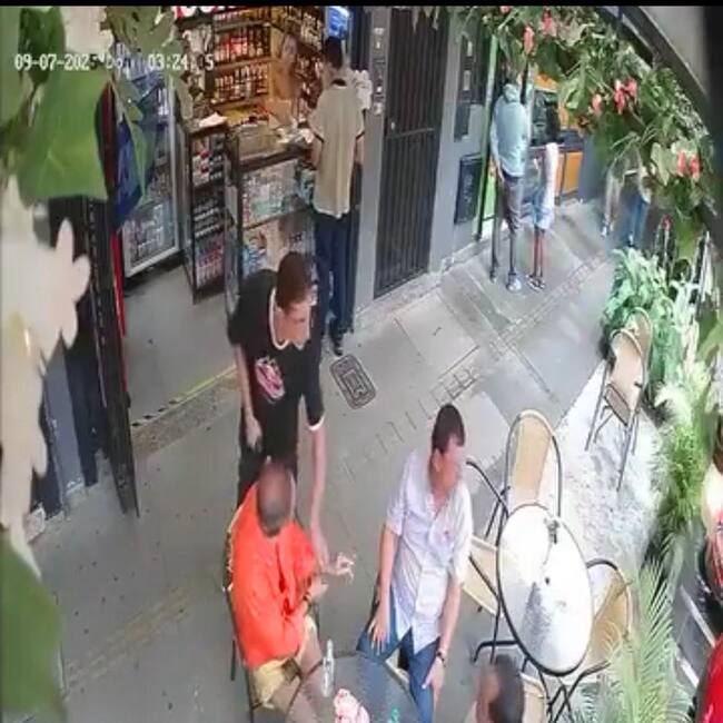 En las imágenes que circulan en redes sociales se observa a uno de los delincuentes, quien con un arma de fuego amenaza a la víctima, cuando departía junto con otros dos acompañantes, y la obligan a entregar el reloj.
