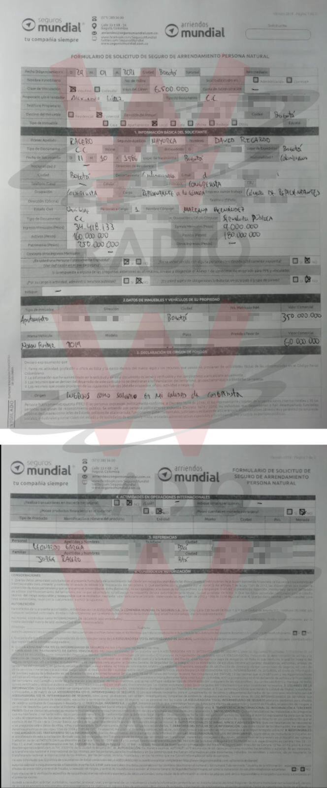 Para su mala suerte, su nombre aparece como referencia de David Racero en el formato de seguro de arrendamiento del local del barrio Villa Luz en el que funcionó el Fruver ‘La cosecha del Campo’ del representante a la Cámara.
