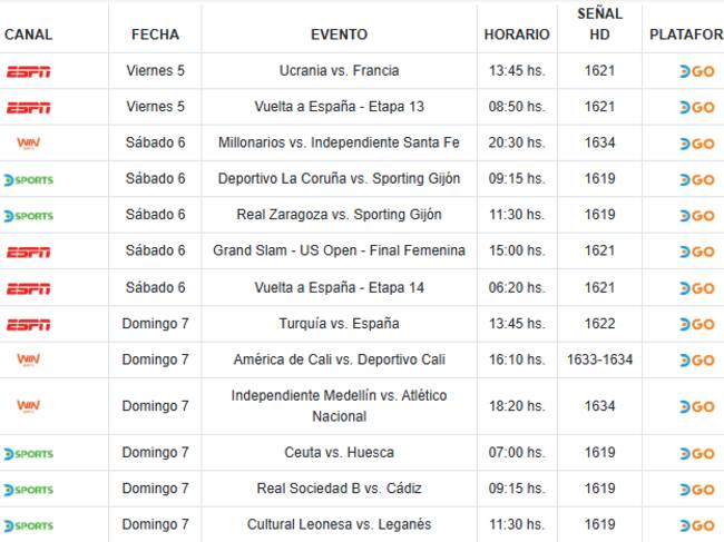 Una nueva semana de agenda deportiva y DirecTV, mediante DSports y DGO, trae consigo la mejor programación. Eliminatorias al Mundial, Vuelta España, Abierto de Estados Unidos, fecha de clásicos en Colombia y mucho más.