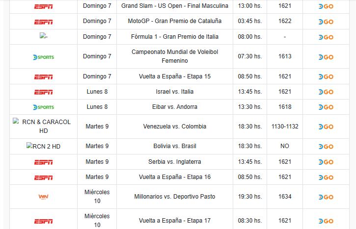 Una nueva semana de agenda deportiva y DirecTV, mediante DSports y DGO, trae consigo la mejor programación. Eliminatorias al Mundial, Vuelta España, Abierto de Estados Unidos, fecha de clásicos en Colombia y mucho más.