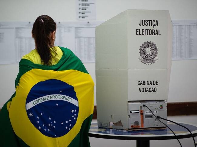 AGUAS CLARAS, BRAZIL - OCTOBER 02: Voters Voters with Brazilian flag during presidential election day on October 2, 2022 in Águas Claras, Distrito Federal, Brazil. After a polarized campaign between Lula and Bolsonaro, the largest Latin American nation votes for president amid an economic crisis. (Photo by Andressa Anholete/Getty Images) / Andressa Anholete