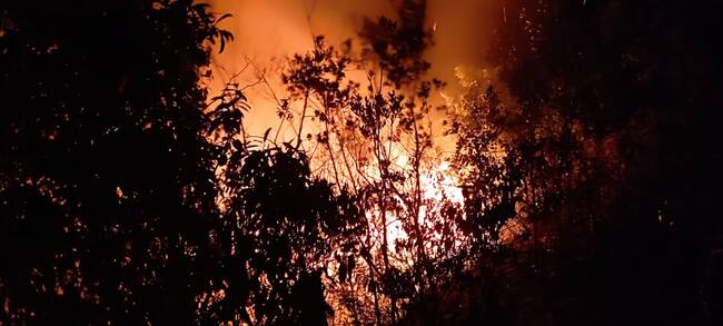 La conflagración se presenta entre las veredas San Pablo y San Pedro en una zona difícil acceso por lo que ha sido difícil determinar el área afectada.