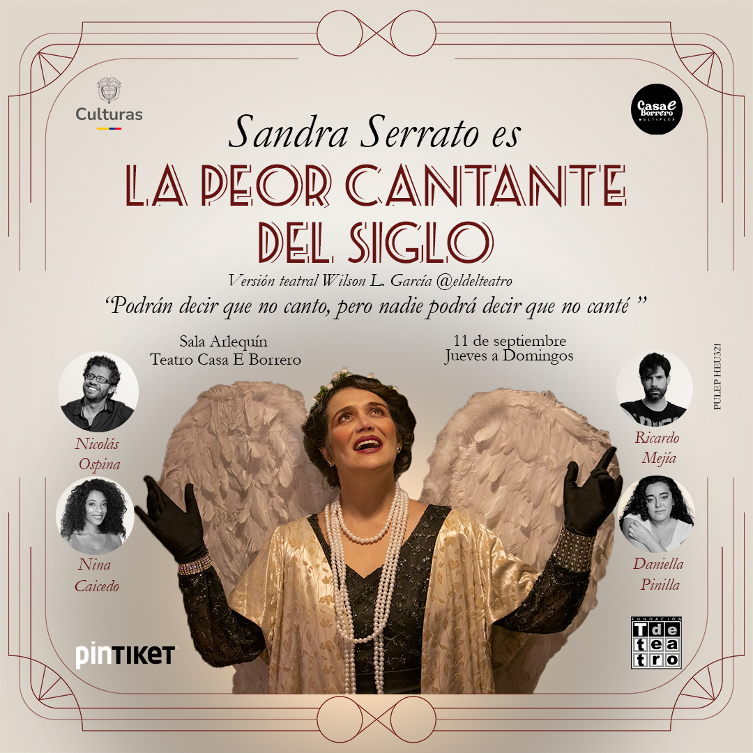 Llega a Colombia al Teatro Casa E Borrero, la historia de “La Peor Cantante del Siglo”, protagonizada por Sandra Serrato, y versionada para las tablas por Wilson León García, donde explora la vida de Florence Foster Jenkins, soprano de la alta sociedad, valiente, absolutamente convencida de su arte y con una fe inquebrantable en sus sueños, aun cuando su talento fuera excepcionalmente mínimo.