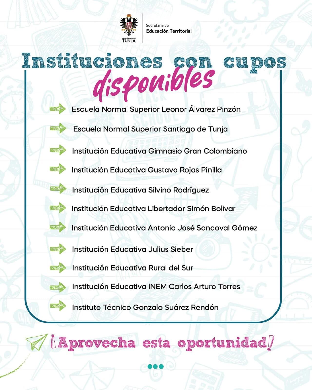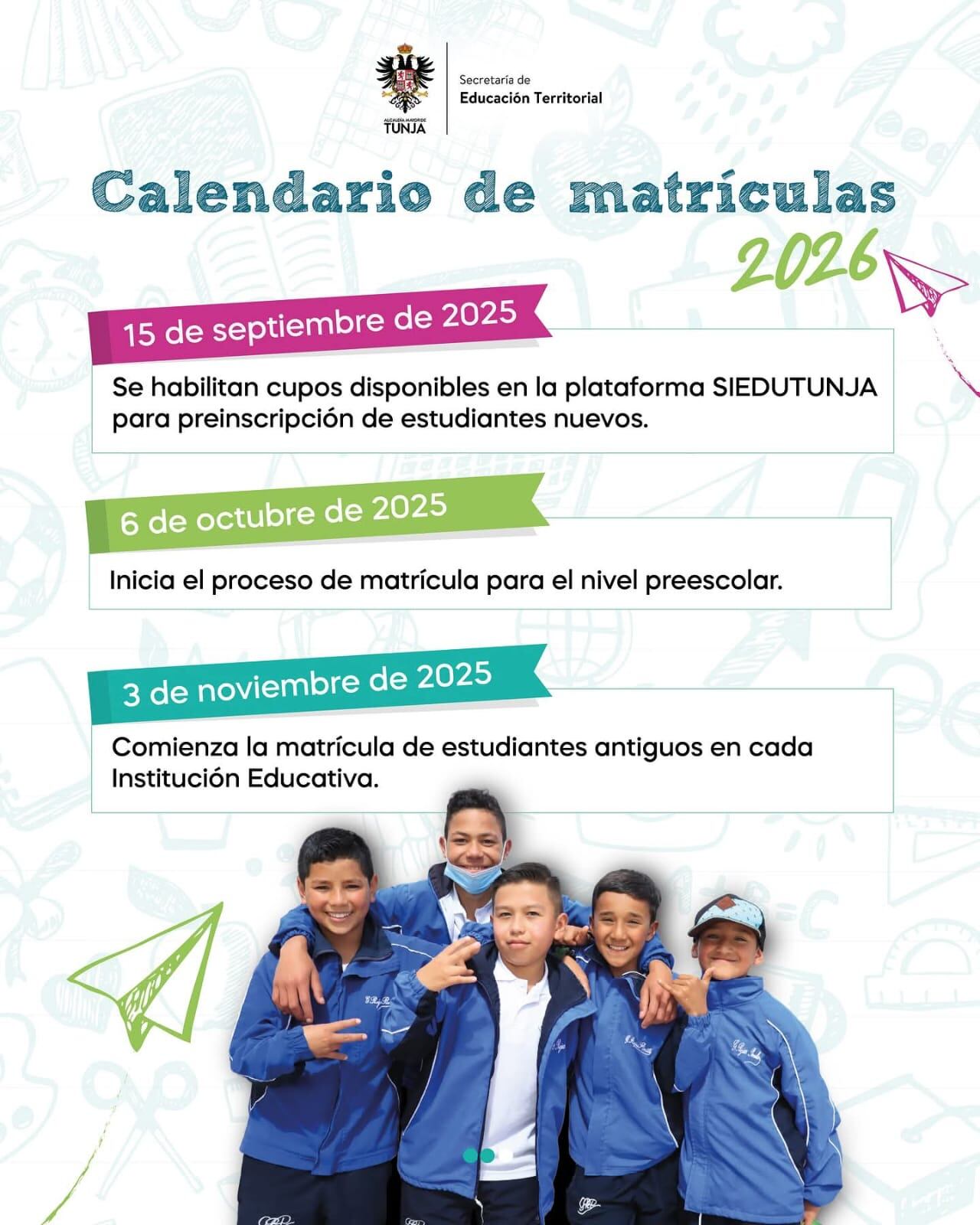 “Efectivamente desde el 15 de septiembre se habilitó la plataforma siedutunja para inscripción de estudiantes nuevos en los grados primero, transición y en tránsito armónico. ¿Qué es el tránsito armónico? Todos aquellos menores que estaban con el Instituto Colombiano de Bienestar Familiar, que traían un proceso con el Bienestar Familiar y que cumplen la edad necesaria pueden ingresar al sistema de educación público de manera gratuita”, afirmó Daniel Moreno Álvarez, secretario de Educación Territorial de Tunja