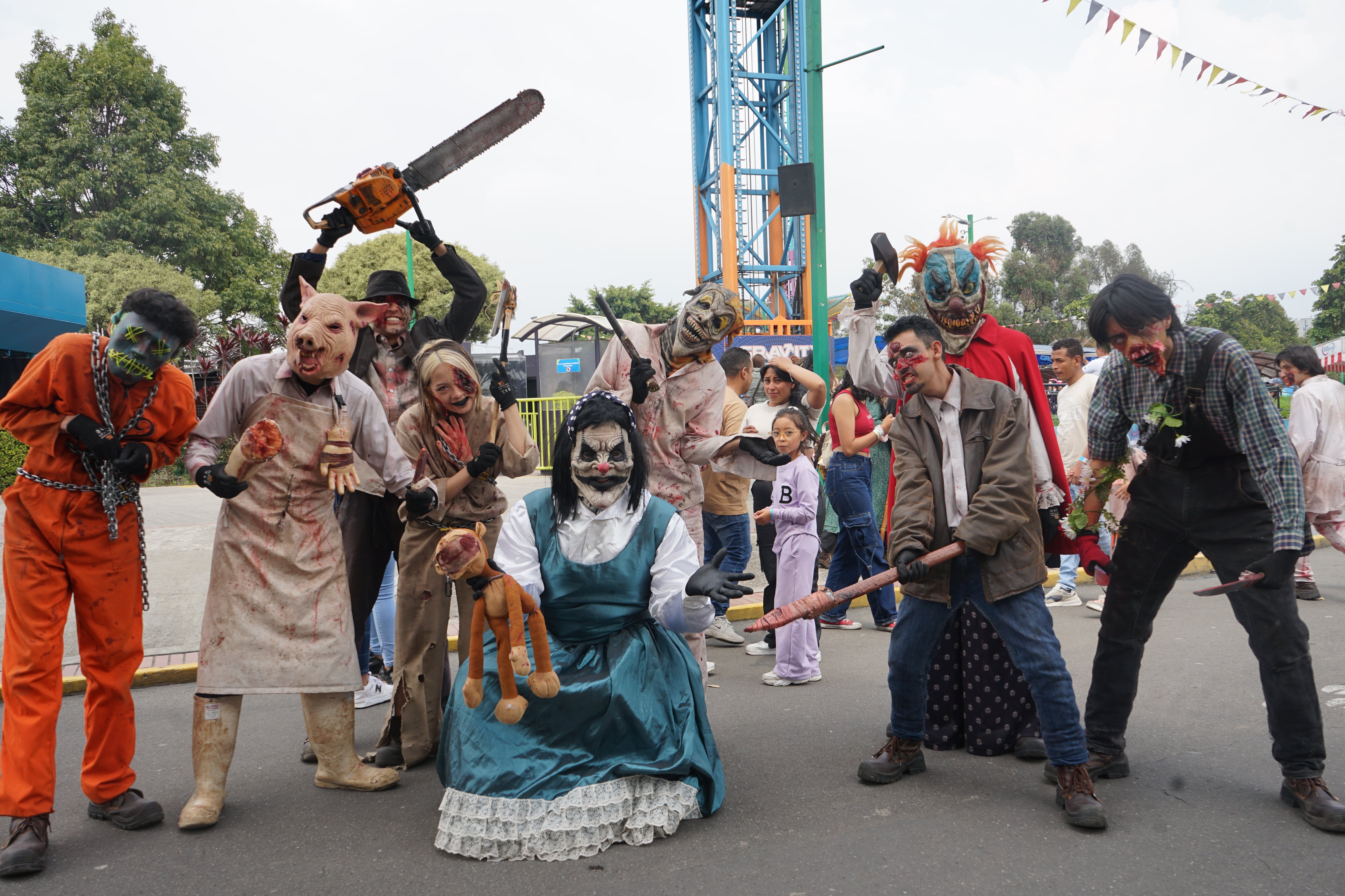 Además, seis experiencias itinerantes incluirán encuentros con payasos, duendes, zombies y asesinos, mientras 16 atracciones mecánicas como Troncos, Gravity, Air Race y Vertical Swing estarán activas durante las jornadas.