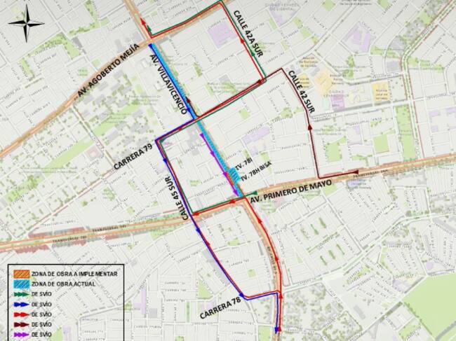 - Usuarios que van por Av. Primero de Mayo y quieren hacer conexión hacia Av. Villavicencio al occidente también tendrán desvíos señalados, por la Calle 42 Sur, Carrera 79, entre otros.