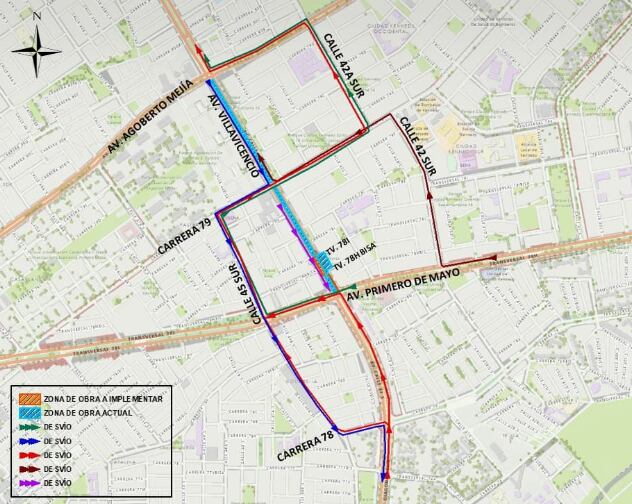 - Usuarios que van por Av. Primero de Mayo y quieren hacer conexión hacia Av. Villavicencio al occidente también tendrán desvíos señalados, por la Calle 42 Sur, Carrera 79, entre otros.