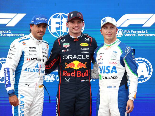 Max Verstappen, Carlos Sainz, Liam Lawson / Getty Images. / Mark Thompson
