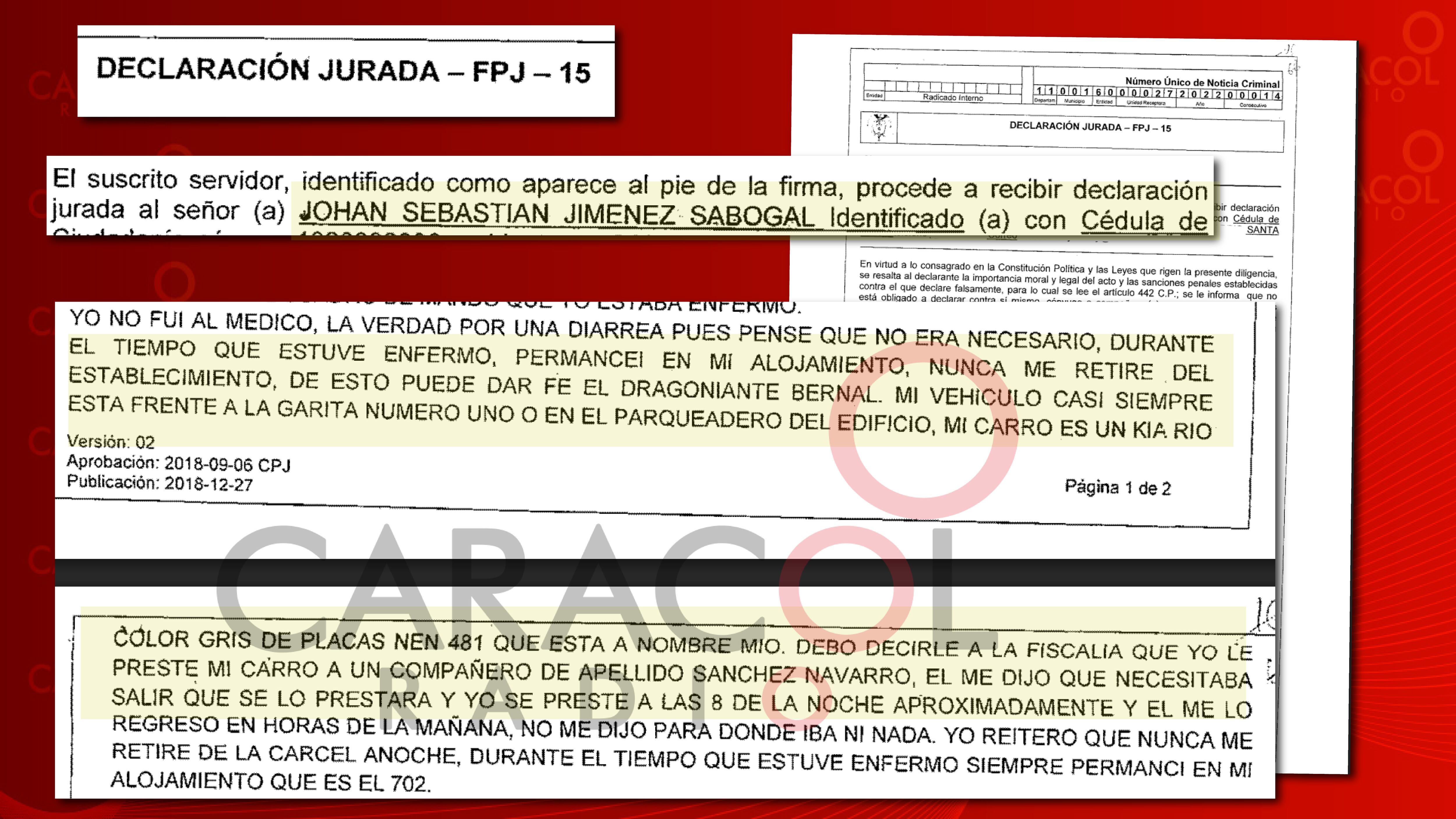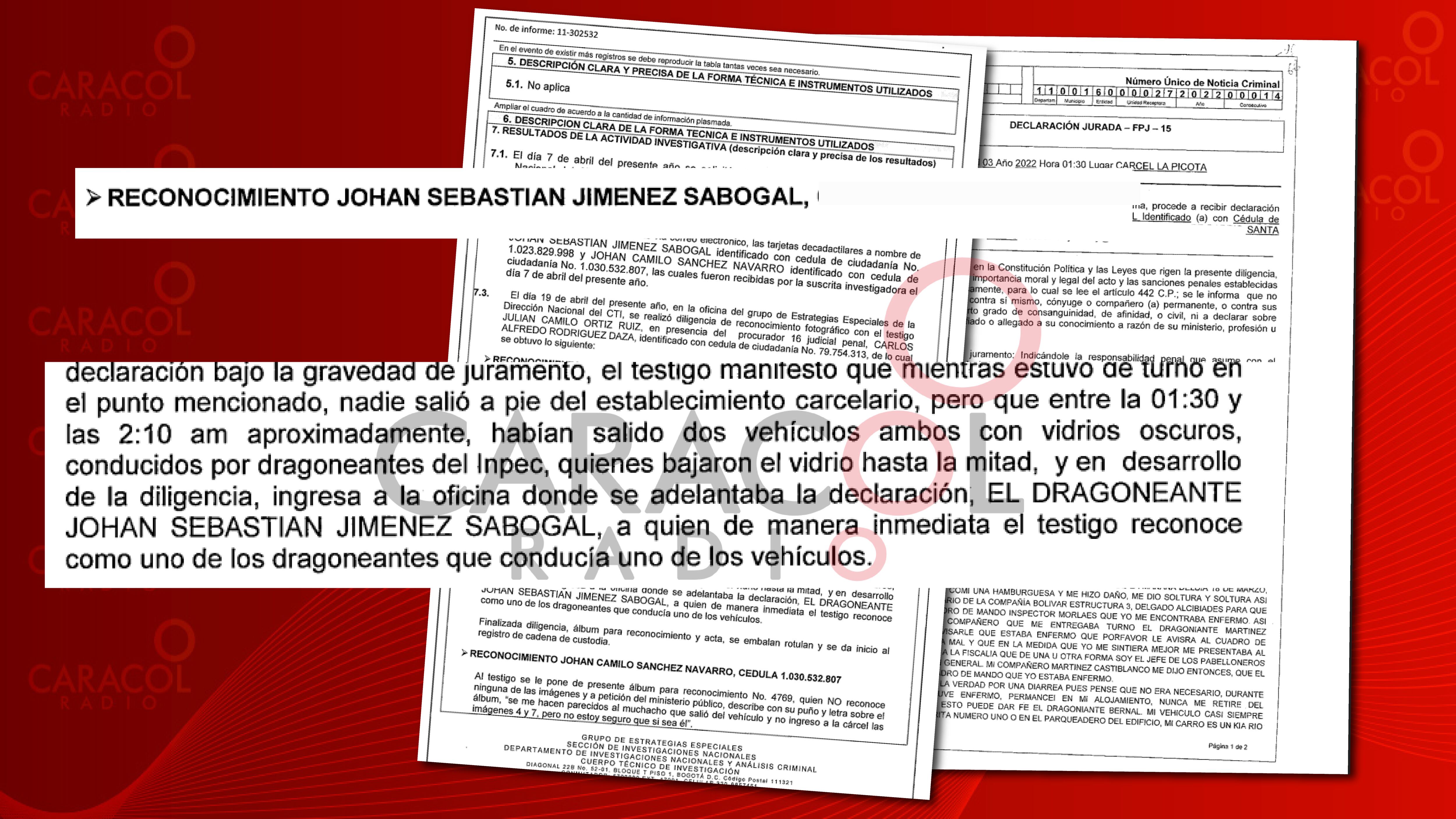 La declaración jurada del testigo Johan Sebastián Jiménez Sabogal, por el caso fuga de 'Matamba'