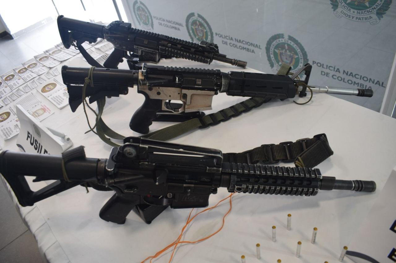 Durante el operativo, realizado por la Seccional de Investigación Criminal en la vereda El Kiosko, fueron hallados en una caleta tres fusiles M-16 con sus respectivos cargadores, 60 cartuchos calibre 5,56 mm, 40 detonadores, 10 citaciones extorsivas y un sello alusivo a dicha comisión de finanzas.