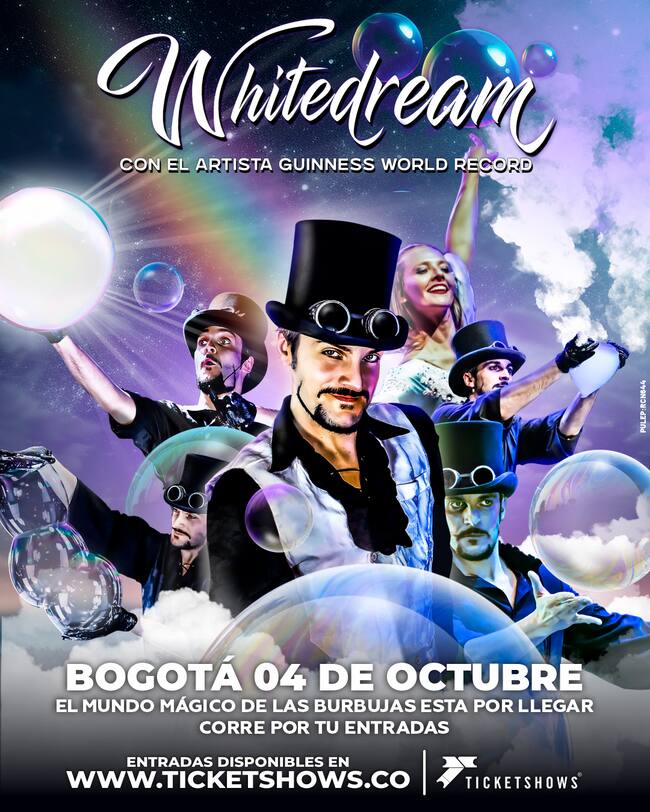 Llega a Colombia “Dreaming Bubbles”, el espectáculo del Mago de las Burbujas, PierpaoloLaconi conocido artísticamente como Whitedream y poseedor del Récord Guinness por la pompa de jabón más grande hecha a mano.Con cuatro presentaciones en Colombia: el 4 de octubre a las 11:00 am y 4:00 pm en MBS Theater Colegio Montessori en Bogotá y el 5 de octubrea las 11:00 am y 4:00 pm en el Teatro Universidad de Medellín. Una experiencia sensorial que transportará a los asistentes a un mundo donde las burbujas cobran vida, la luz se multiplica en colores y la fantasía se mezcla con la ciencia.