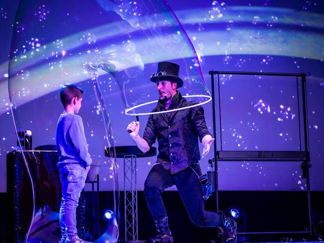 “El Show de Burbujas Mágicas”, es un espectáculolleno de ilusión y emoción, capaz de sorprender no solo a los más pequeños, en cuanto la propia estructura de las pompas dejará asombrados también a los adultos, activando ese mecanismo inconsciente que nos permite “volver a ser niños” cuando miramos estas esferas iridiscentes.