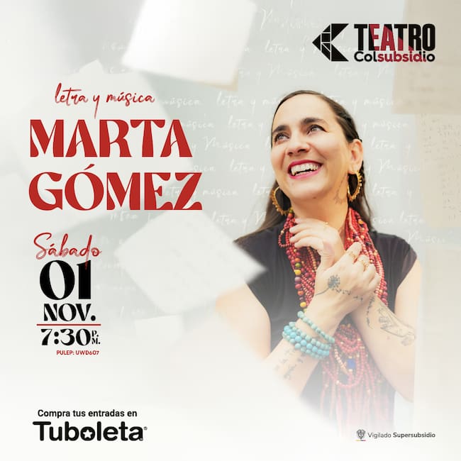 A lo largo de su trayectoria, Marta ha entrelazado con maestría los timbres de la guitarra, la poesía de sus letras, los ritmos folklóricos latinoamericanos y las sonoridades del jazz, consolidándose como una de las cantautoras más destacadas de la música independiente a nivel internacional. Ganadora del Latin Grammy en 2014 y 2015, con 22 producciones discográficas y más de 100 canciones compuestas, Marta Gómez “Letra y Música” se presentará el 1 de noviembre en el Teatro Colsubsidio, Bogotá, entradas disponibles en www.tuboleta.com.