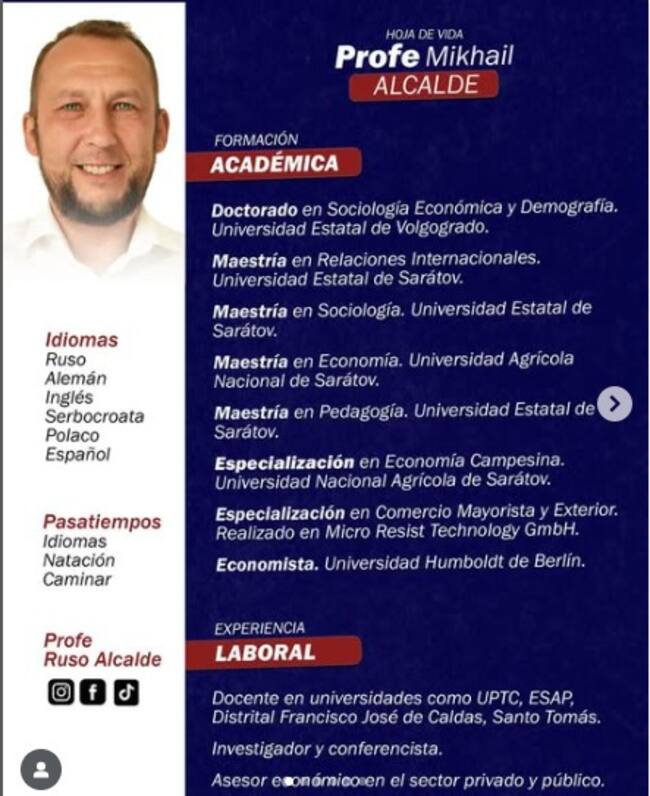 Durante la diligencia de imputación de cargos, el fiscal Óscar Díaz reveló la hoja de vida del mandatario, en la que figura como docente y traductor en la Universidad Pedagógica y Tecnológica de Colombia (UPTC). Asimismo, recordó que en la plataforma del Sistema de Información y Gestión del Empleo Público (SIGEP) aparece registrada su experiencia académica y profesional en el país.