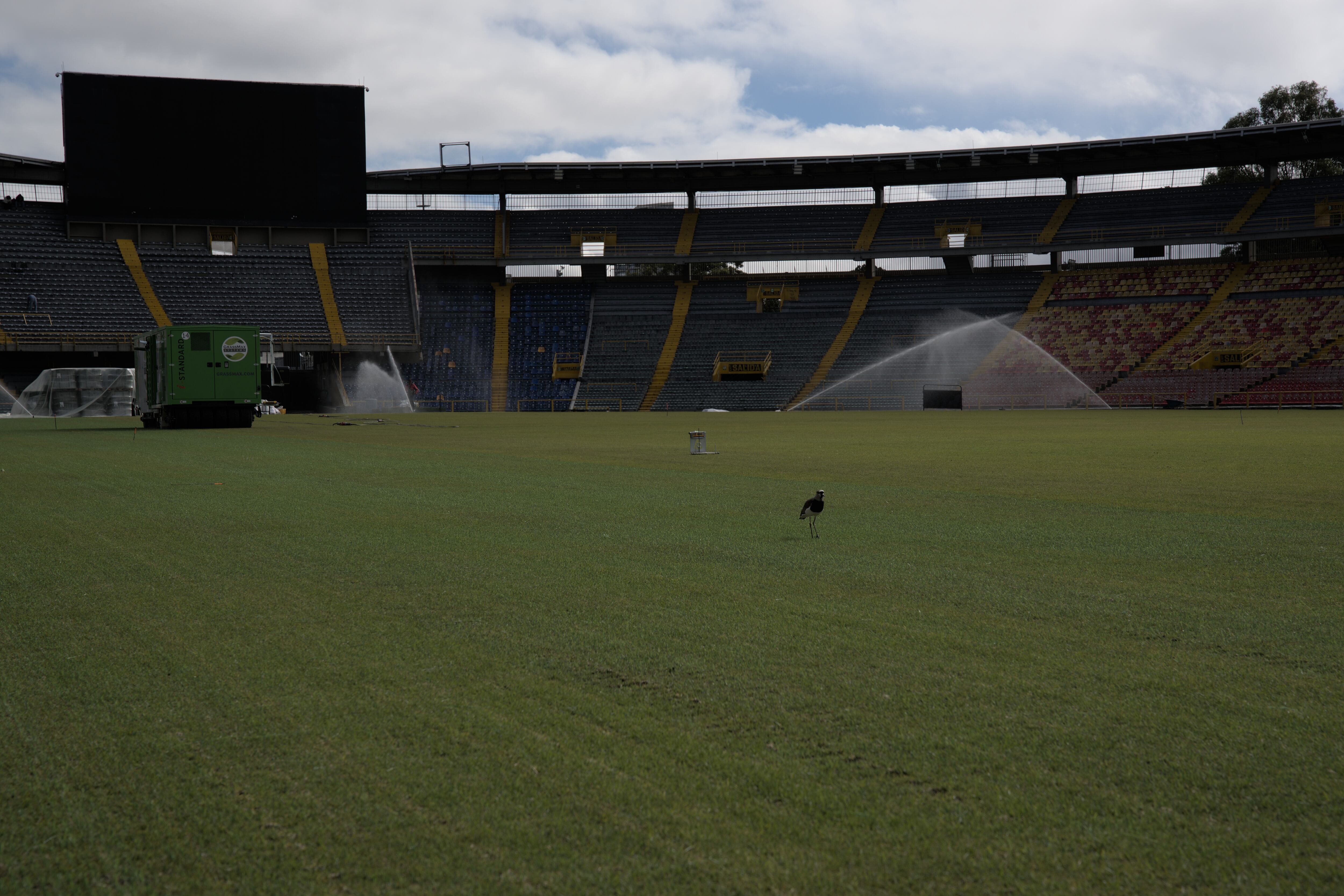 Así se encuentra el césped del estadio El Campín terminada la primera fase de hibridación / Foto suministrada por Sencia.