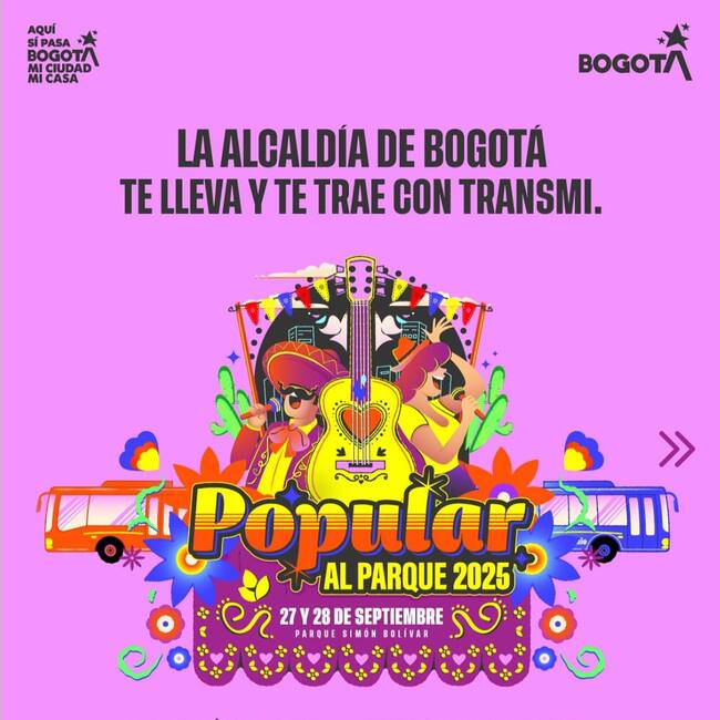 Este sábado 27 y domingo 28 de septiembre, Bogotá tendrá el festival ´Popular al Parque 2025´, por lo que la Secretaría Distrital de Movilidad, autorizó cierres y desvíos viales.