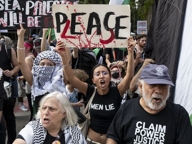 Entre los convocantes de la marcha se encuentran, además de Palestinian Youth Movement, otros colectivos como Jewish Voices for Peace o el Palestinian Feminist Collective.