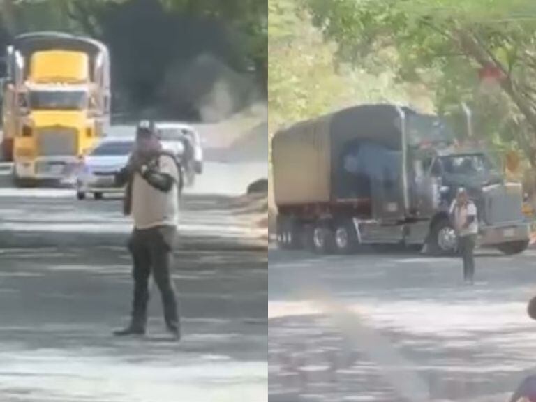En un video grabado por un conductor, se observa cómo los ilegales detienen el tráfico de vehículos, obligan a un tracto camión a desviar su ruta y secuestran a su conductor.