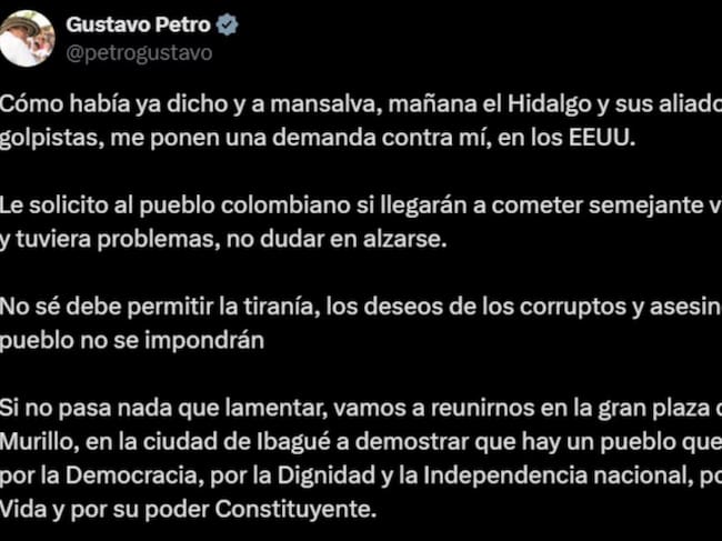 Mensaje del presidente Gustavo Petro a través de sus redes sociales