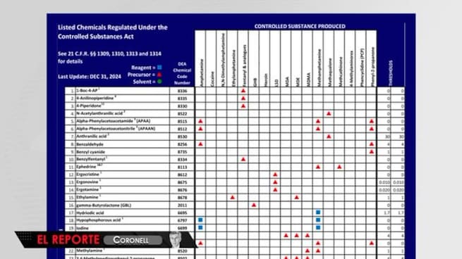 Cada una de las sustancias tiene una cifra llamada “Código químico de la DEA”. Además, están clasificadas en tres categorías: Reactivo, precursor o solvente.