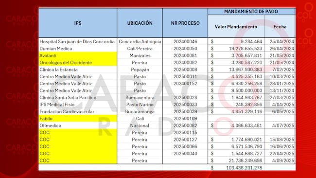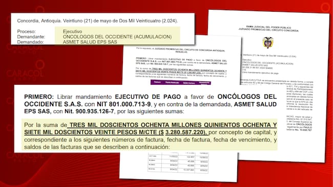 Hay una coincidencia, el 21 de mayo de 2024 el juez de Concordia ordenó a AsmetSalud pagar $3.705 millones a Avidanti SAS; y $3.280 a Oncólogos de Occidente.