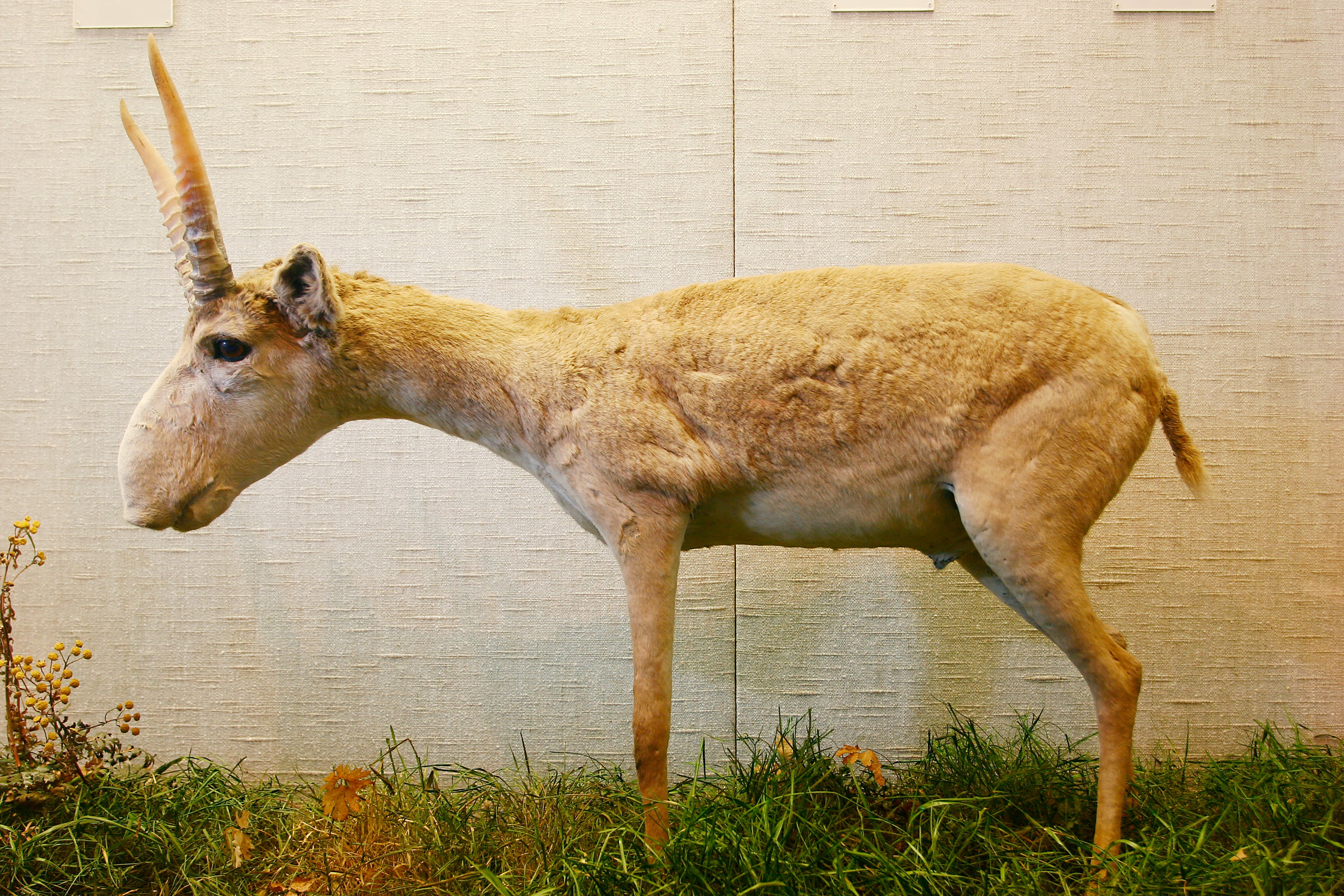 Esta especie de Antílope, ha convivido con animales extintos como los mamuts o los tigres dientes de sable, con la diferencia de que han logrado sobrevivir. Su principal característica, y la más curiosa, es su extraña nariz, la cual ha cambiado a medida que evoluciona para poder calentar el aire frío durante el invierno. A pesar de la gran cantidad de ejemplares que había en 1990, su población se vio muy disminuida debido a una enfermedad que se desarrolló en 2015, lo que en conjunto con la caza indiscriminada de la que son víctimas por sus cuernos, actualmente los mantiene amenazados con la extinción.