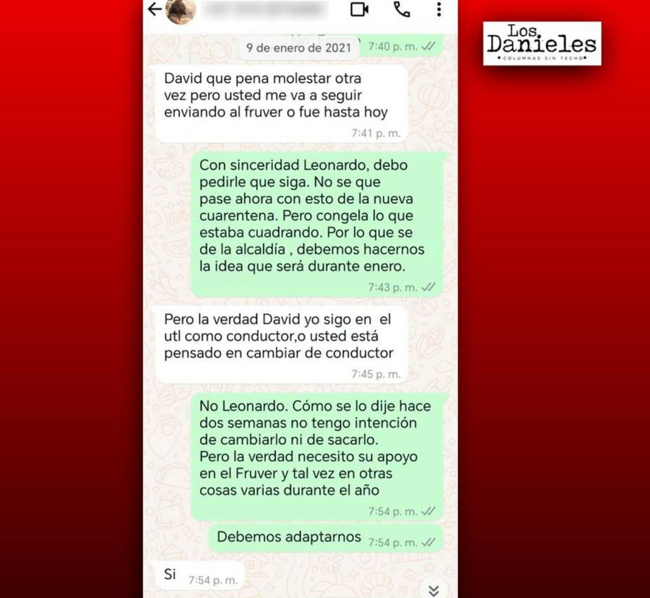 Sobre el tema también existen notas de voz, como esta en la que el señor García, pide instrucciones al congresista sobre los suministros del Fruver.