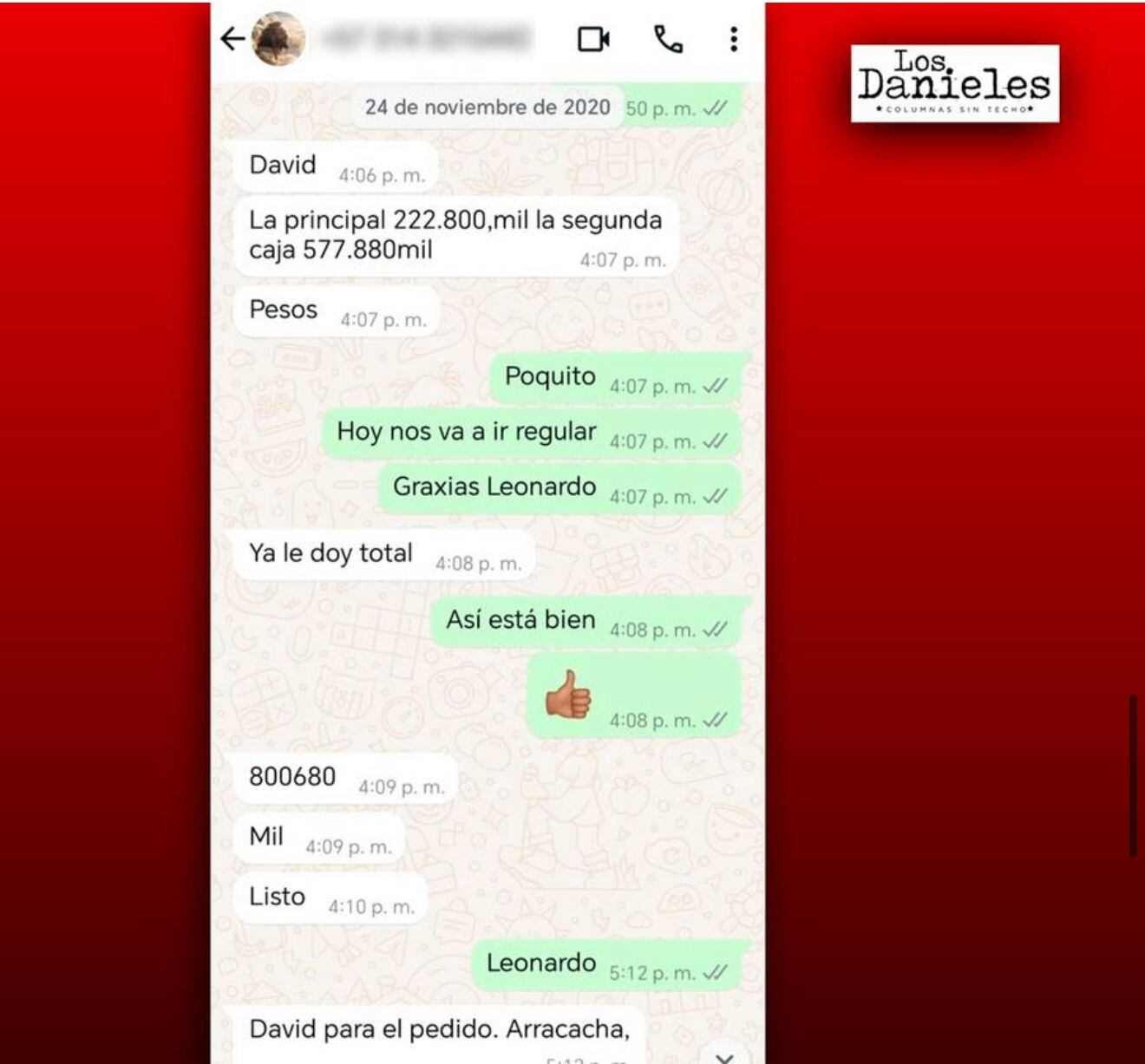 –David –le dice John Leonardo García al representante Racero– La principal 222.800, la segunda caja 577.800.