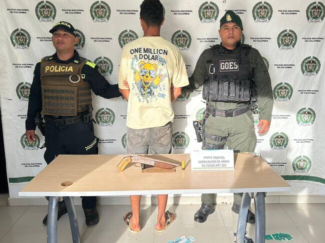 Fue así como los Policías le solicitaron un registro personal, accediendo a la solicitud de los uniformados, quienes le hallaron en la pretina de la bermuda un arma de fuego de fabricación artesanal tipo escopeta y un cartucho sin percutir.