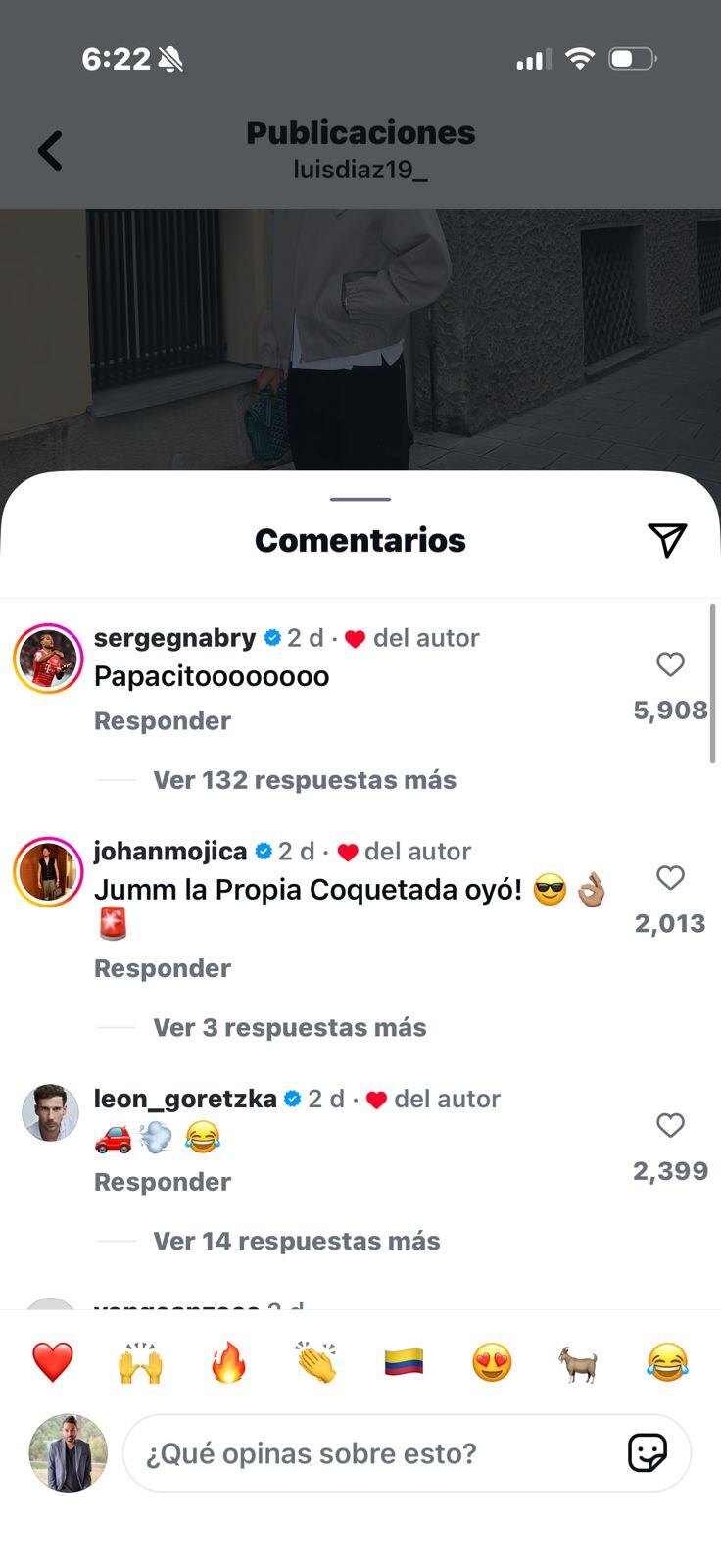 Serge Gnabry respondió al post colocando ‘Papacito’. Este fue el comentario con más likes de la publicación de ‘Lucho’, con 6.000 likes, aproximadamente.