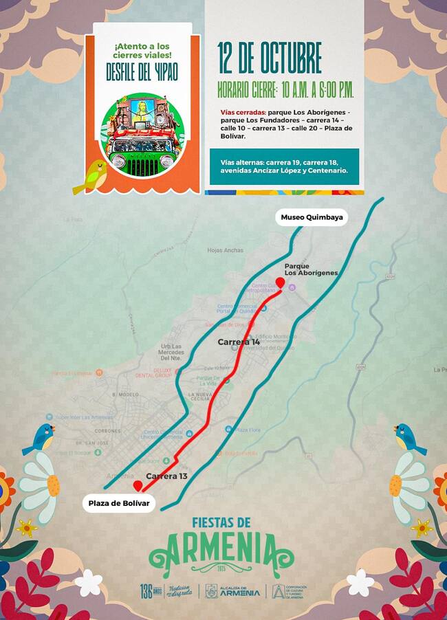 Cierres viales por el desfile del Yipao en Armenia. Foto Cortesía alcaldía de Armenia