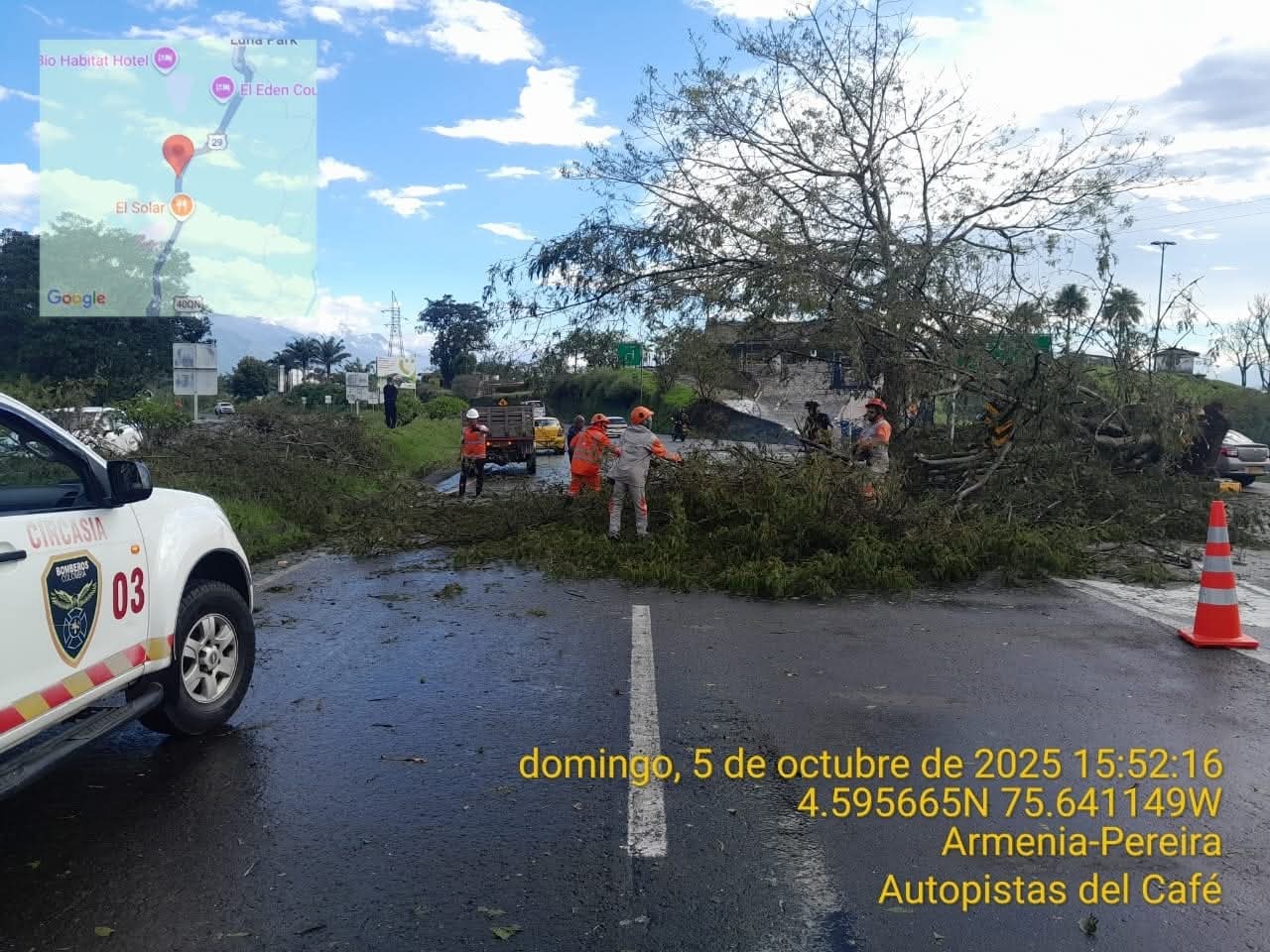 Caída de árbol por vendaval en autopistas del café: Foto: Cortesía bomberos Circasia
