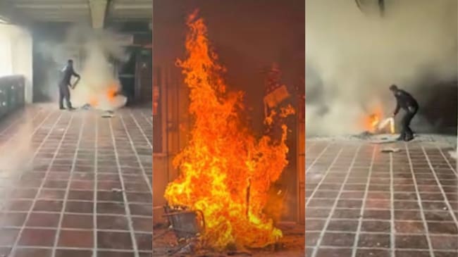 Durante el ataque también fueron pintados grafitis y quemados pendones pertenecientes a uno de los aspirantes a la rectoría, lo que refleja el clima de tensión que vive la universidad en medio del proceso electoral.