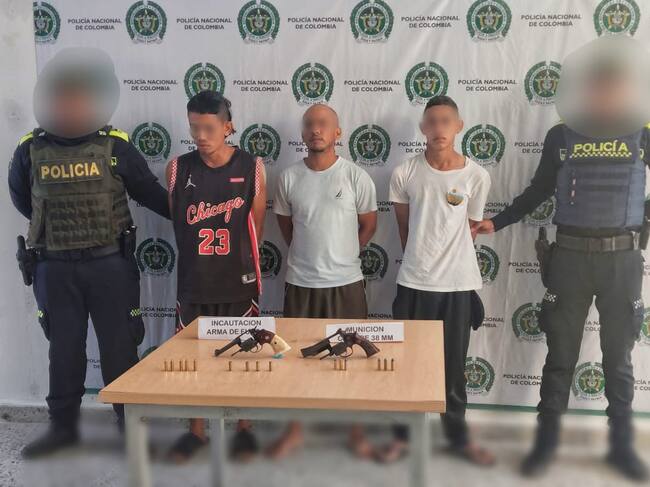 En Sincelejo, cuatro hombres fueron capturados en flagrancia por la Policía Nacional, señalados de portar armas de fuego sin permiso y de participar en un presunto intento de atentado sicarial.