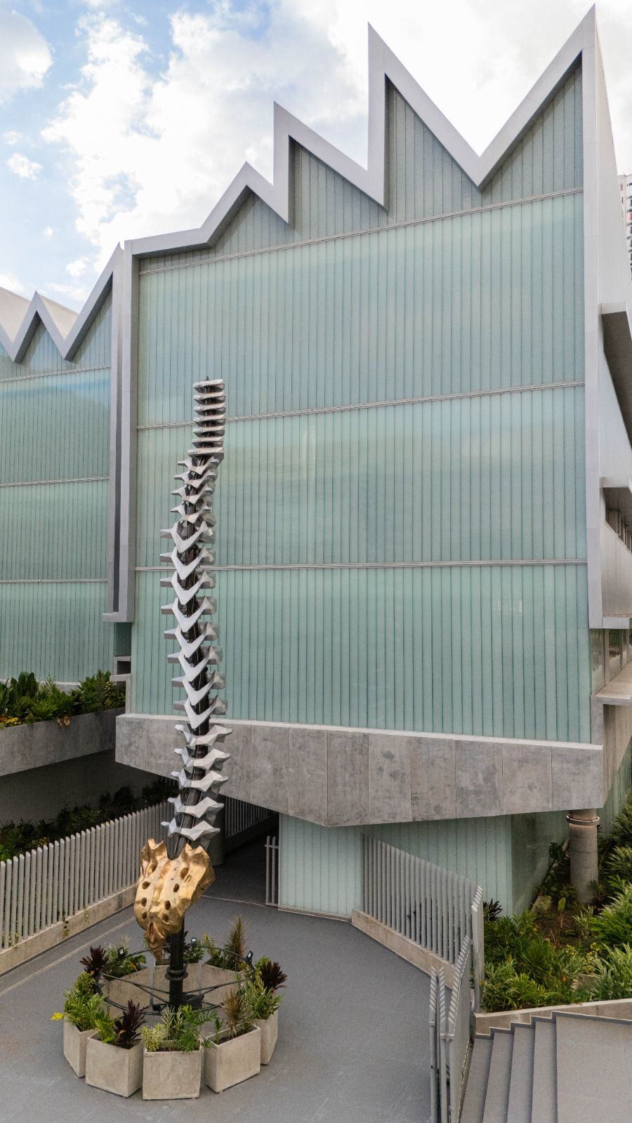 Se trata de “Axis Vitae, el eje de la vida”, una obra del maestro santandereano Juan José Cobos Roa, creador del Santísimo y del Leopardo del Atlético Bucaramanga, que simboliza la esencia vital de la ciencia y la salud.