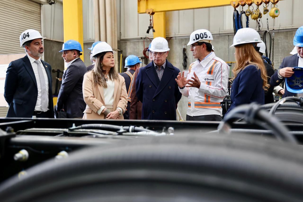 El presidente Gustavo Petro y la ministra de Transporte, María Fernanda Rojas, visitaron la planta de HINO, donde en alianza con BYD y la empresa Marcopolo se dio inicio a la producción del primer bus eléctrico fabricado en el país.