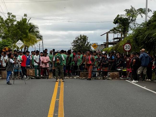 Protesta de comunidades indígenas mantiene bloqueada la vía Medellín-Urabá. Foto: Cortesía.