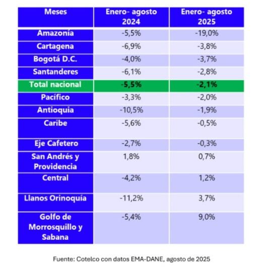 A nivel nacional el descenso promedio fue del 2,8%, evidenciando un comportamiento negativo que golpea con fuerza al nororiente del país.